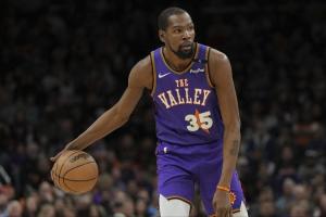 体育资讯04月01日讯 据ESPN名记Shams Charania报道,多位消息人士透露,杜兰特因左脚踝扭伤预计至少将缺席一周,不会随太阳出战接下来的东部三连客之旅。